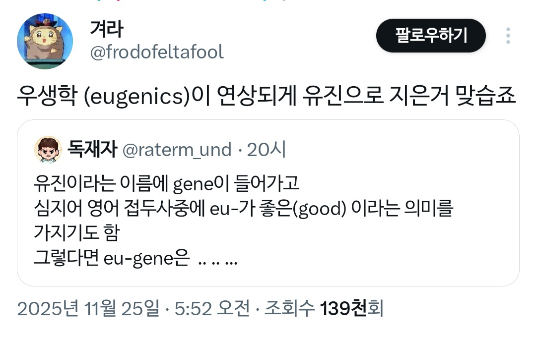 재개봉판은 "나처럼 우수한 유전자도 2등에 그쳤어"라서...